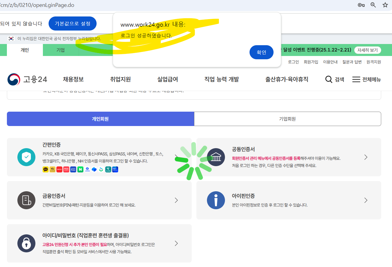 다만 인증서 등록이 안되어있는 경우에는 등록절차를 먼저 진행해야하니 이점 참고하세요.