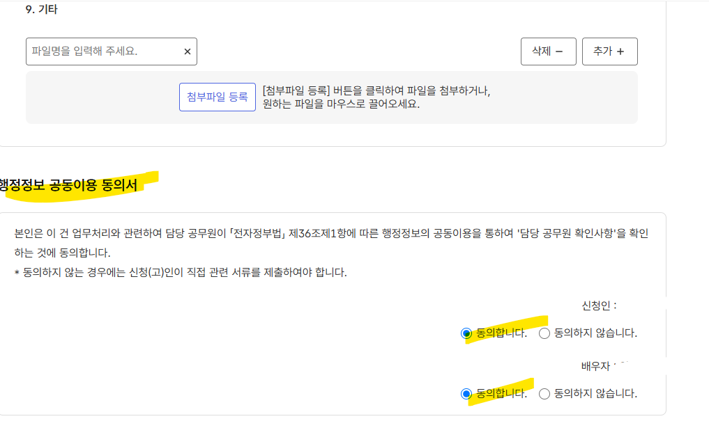 이후에는 육아휴직신청 구비서류 제출을 하고 동의를 눌러주면 됩니다.